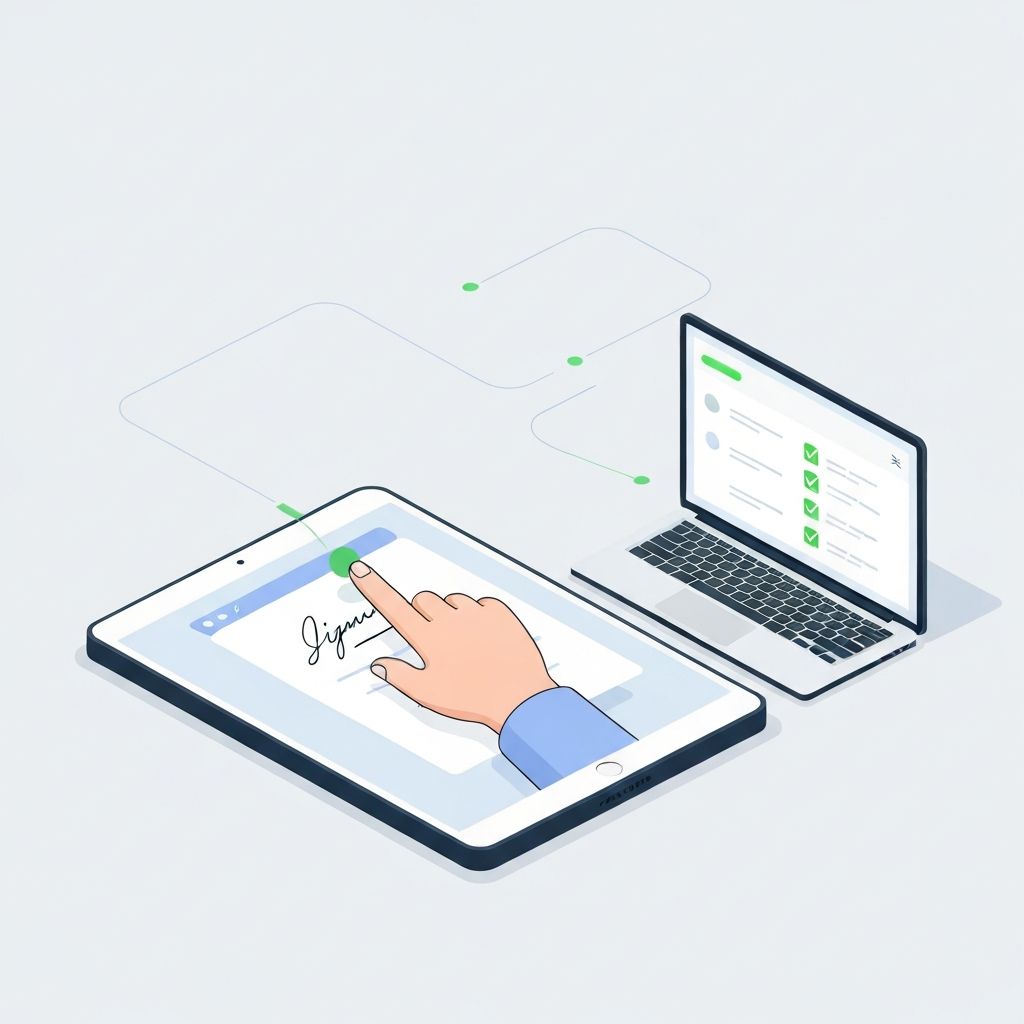 Klient podpisuje online alebo priamo na tablete na mieste.